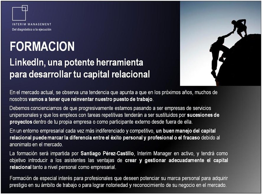 El próximo 25 de Febrero el Centro de Tecnología Límpias de la Comunidad Valenciana ha organizado una Jornada sobre el Community Manager y el Medio Ambiente Dentro del panel de ponentes seleccionados sobre el tema, daré la conferencia sobre Nuevas Formas de Comunicación y Sensibilización Ambiental en la que como Interim Manager comentaré mi visión sobre […]